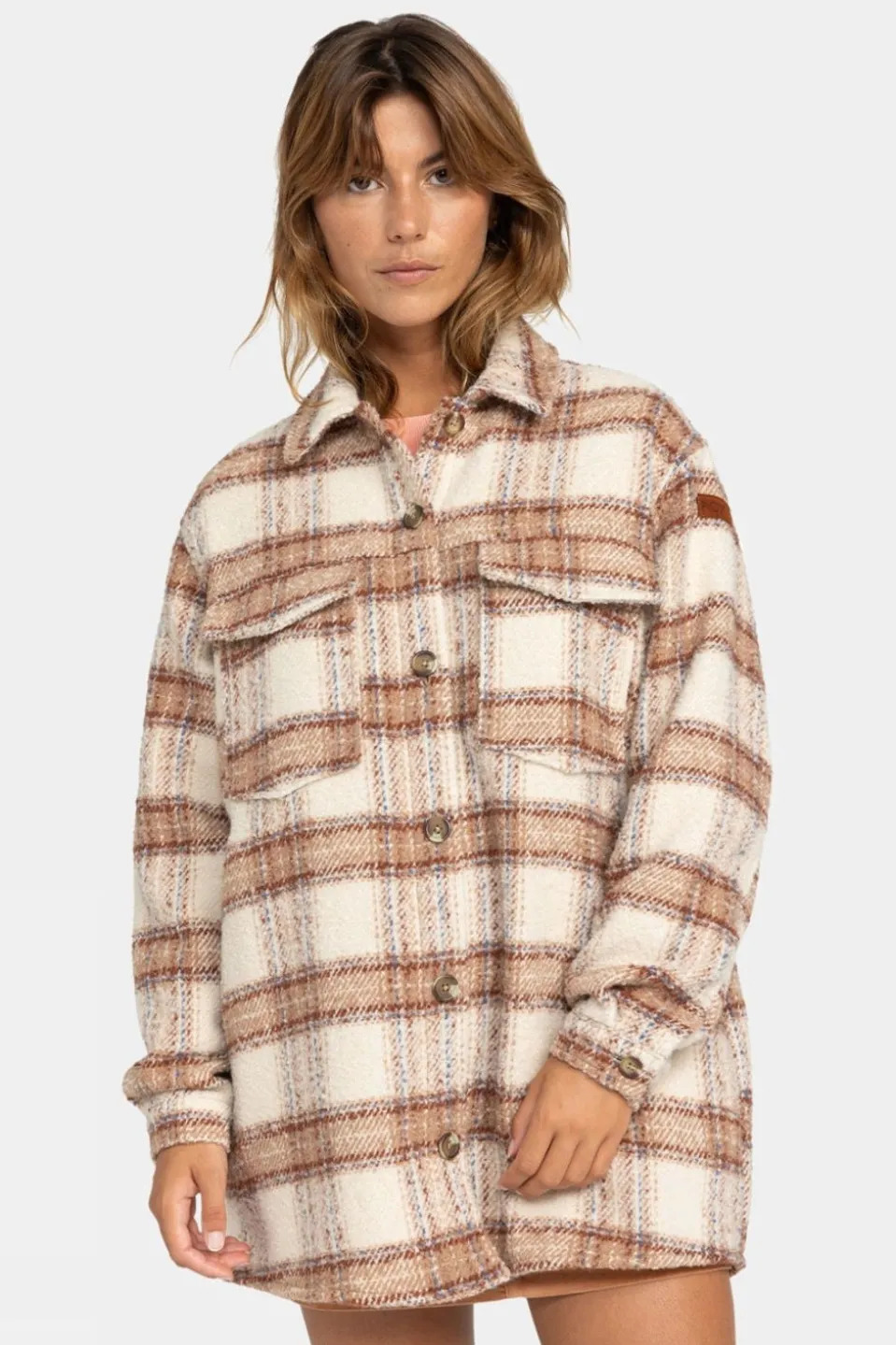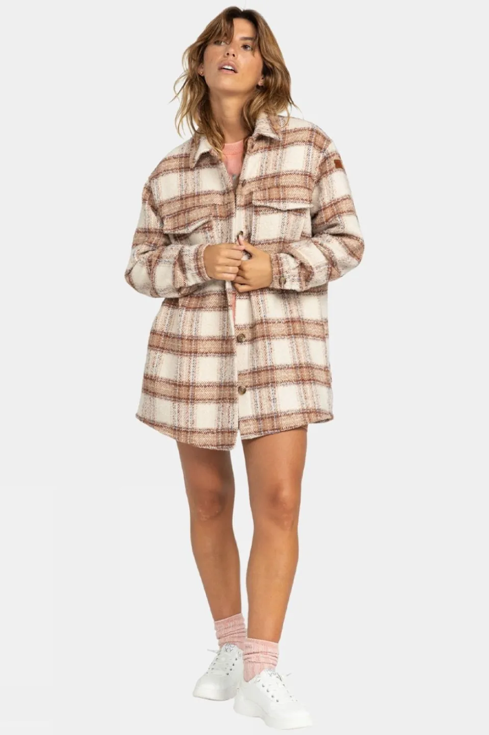The Women’s Check The Swell Shacket by Roxy is a stylish checkered blanket coat crafted from a blend of 95% polyester and 5% wool, featuring a check plaid pattern with a weight of 465g. Designed with a relaxed fit, this shacket offers both comfort and versatility, perfect for everyday wear as well as those chilly winter walks.The shacket featuresboth chest patch pockets and sideseam pockets for practical storage foryourvaluables when out and about. Fastened with recycled buttons on the front placket, pockets, and cuffs, andalso finished with a distinctive Roxy suede patch for added detail.Embrace the season’s beauty with this must-have wardrobe addition.