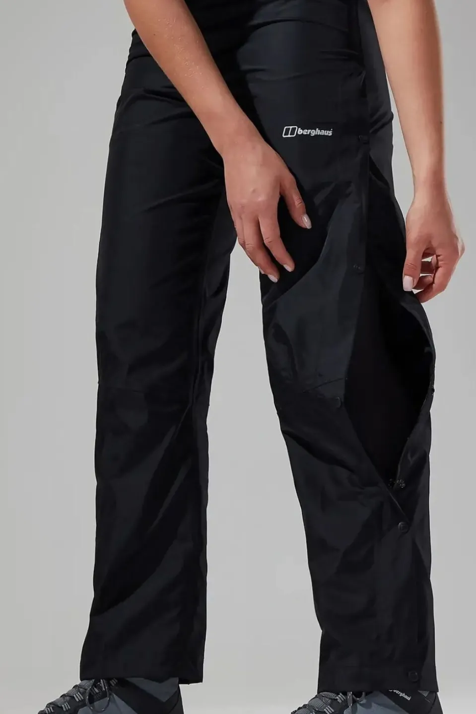 Lovely and light, the Women’s Berghaus Deluge 2.0 Pants are designed using high performance two layered Hydroshell fabric for complete waterproof protection. Stretch out the pace and relax with greater movement built in and side poppers for that welcome breath of fresh air. Pure comfort arrives in the form of an elastic waistband and side adjustments. So, what’s stopping you? Gather the gang and trounce that hill trail.