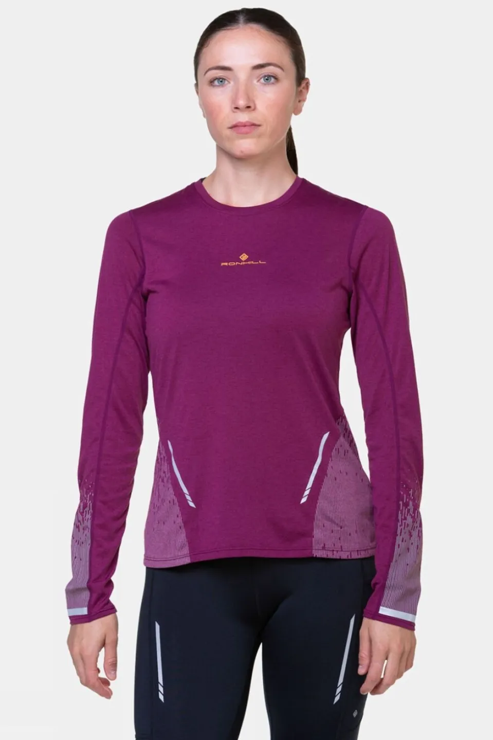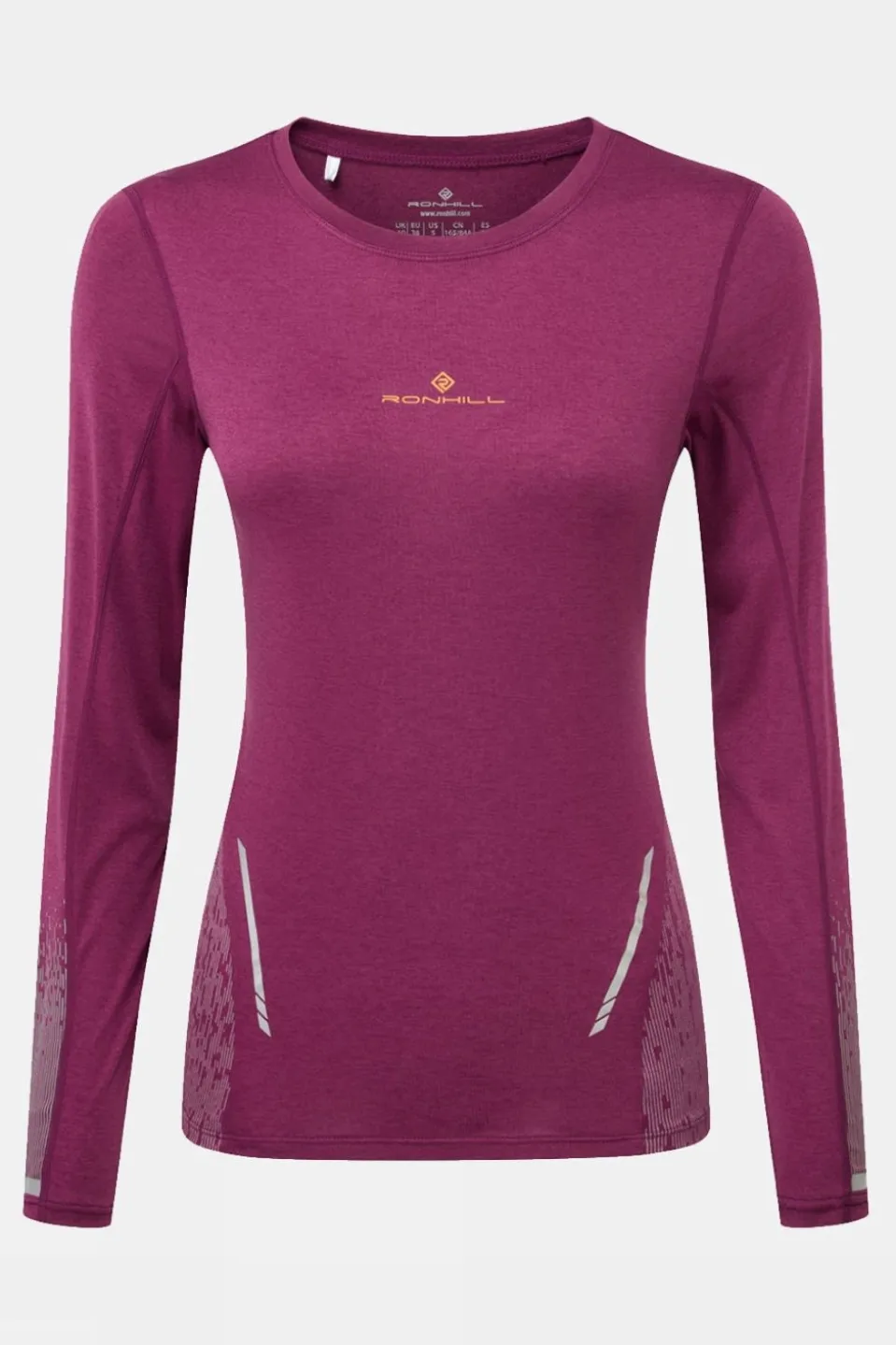The Ronhill Women’s Tech Reflect Long Sleeve Top is the perfect layer for low-light training conditions. Reflectivity is provided by iridescent strips and a screen print, giving the top 360° visibility when a jacket isn’t needed. So darker conditions won’t disrupt your training routine as you remain highly visible under the streetlights after-hours.