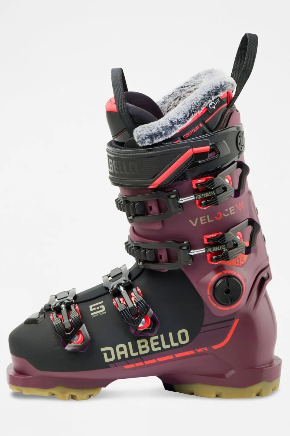The Women’s Veloce 95 MV is tailored for advanced female piste skiers seeking top-tier performance and exceptional comfort. It boasts Contour 5 technology and comes pre-fitted with GripWalk soles for a superior skiing experience.