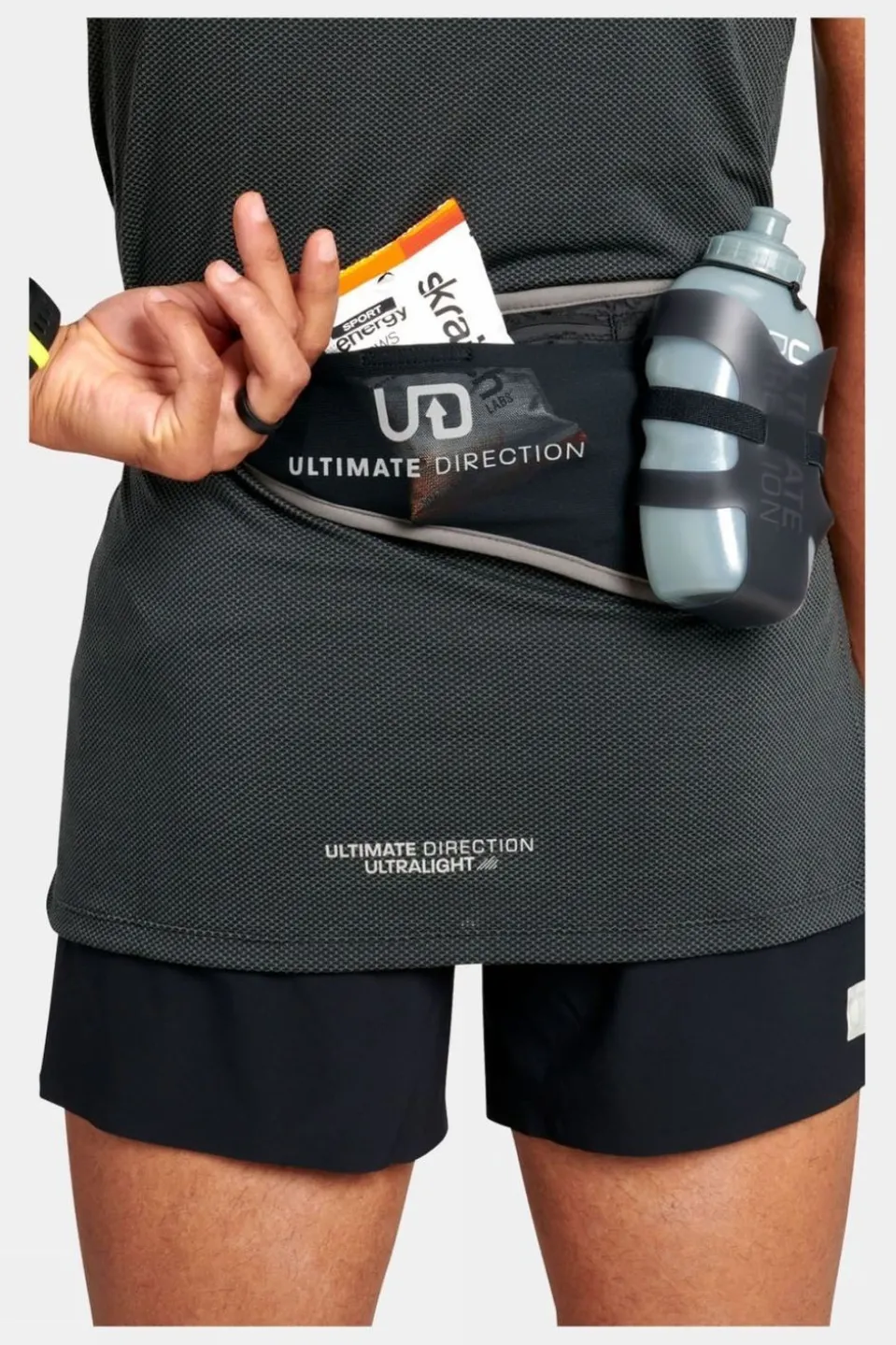 Everything you need and nothing more, the Ultimate DirectionAccess 500 Hydration Beltis a comfortable way to carry hydration, phone, keys, and nutrition on your runs. Featuring a spacious zippered back pocket, it ensures secure storage for your smartphone, while the mesh backing offers unparalleled comfort against your skin and enhances breathability. The adjustable SR buckle waist strap not only provides comfort but also accommodates a wider range of body types.