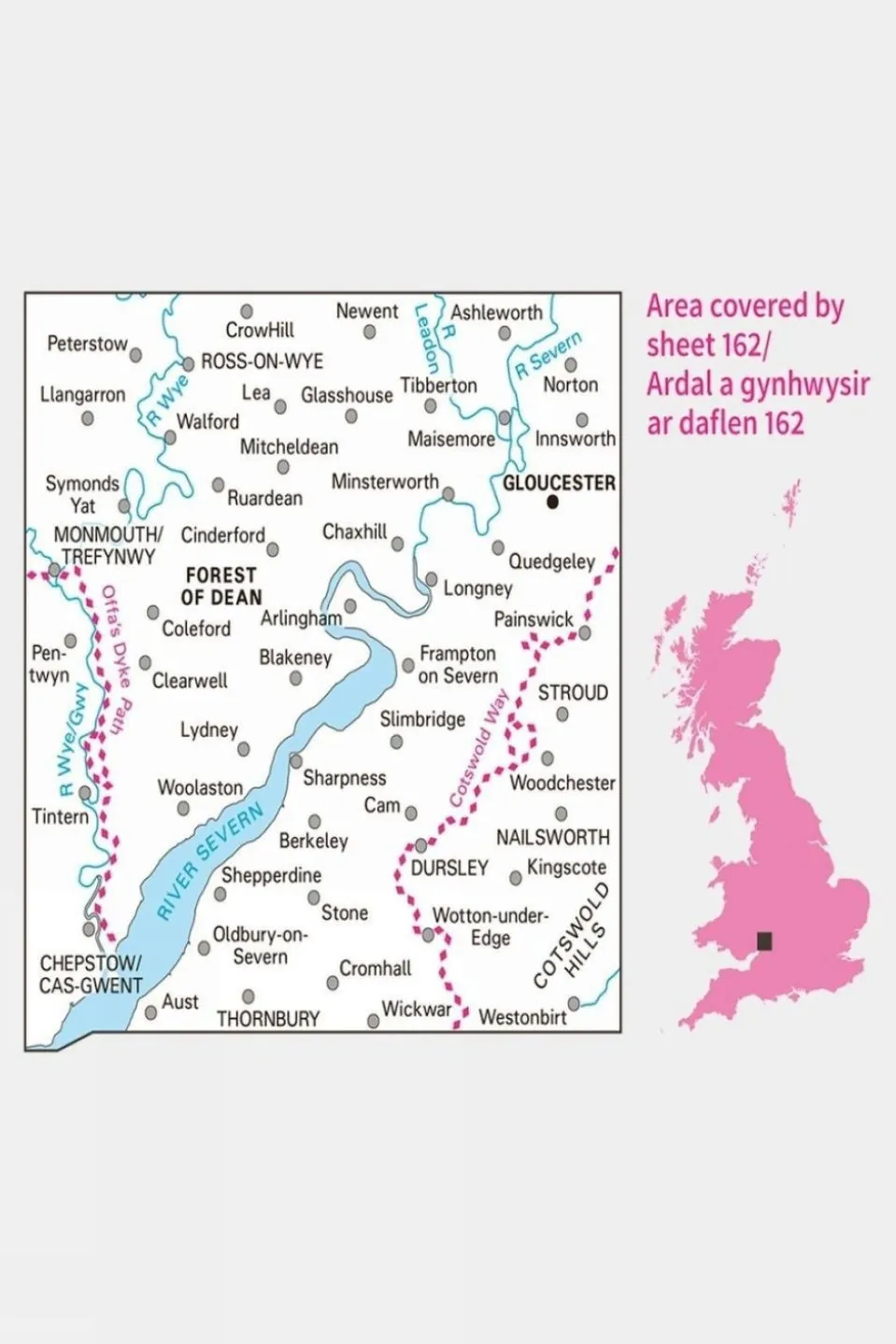Perfect for day trips and short breaks, Ordnance Survey’s Active Landranger Map 162 Gloucester and Forest of Dean provides 40 by 40 kilometres (25 by 25 miles) of clear, easy-to-read 1:50,000 scale coverage, wherever you’re heading in Great Britain. Landrangers are overlaid with National Grid squares, so every point in the country can be given a unique identifying number. As well as a good level of geographical detail, the Landrangers display various places of interest, picnic areas, campsites and tourist information. In addition, Rights of Way information is displayed for England and Wales.
