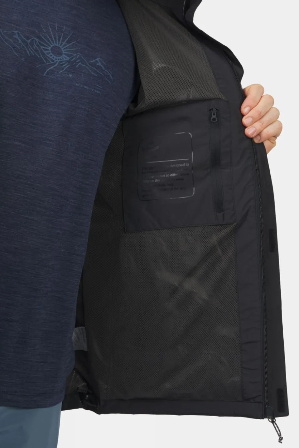 The Adventure Jacket II also features an inside pocket, two closeable pockets, and a storm flap over the front zip. When the sun comes out again, easily store the jacket in its own jacket pocket. Thanks to the strap, you can wear the pocket as a cross-body bag and it even has an extra pocket for valuables.