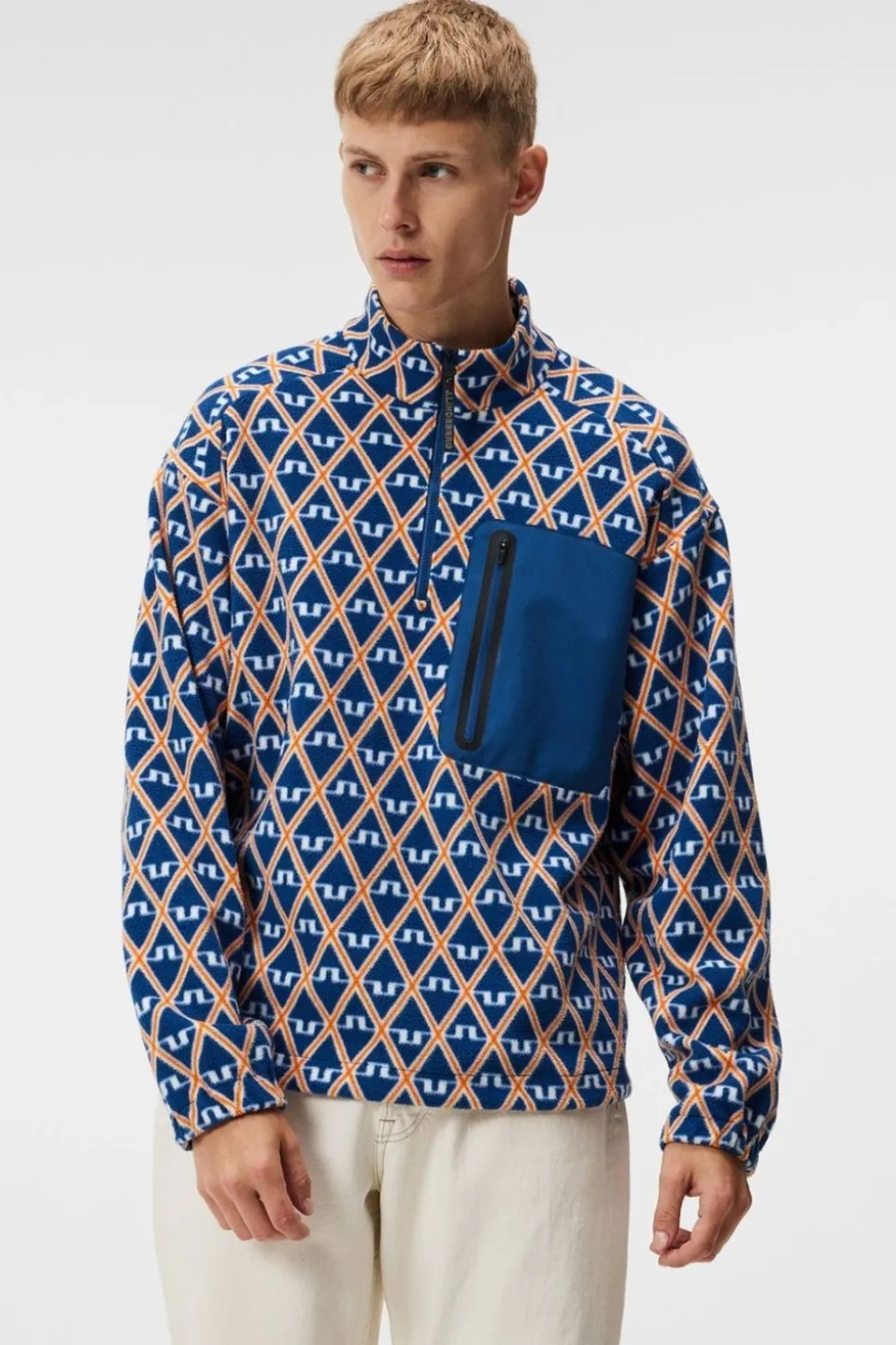 Embrace cozy warmth with the Blade mid-layer, enveloped in luxurious thick soft-pile polyester fleece. Designed to combat the chill, its elastic cuffs and drawstring hem effectively fend off the cold. The OEKO-TEX certified fabric, engineered for moisture-wicking prowess, ensures you stay comfortably dry even during rigorous activity. Stand out with its seasonal print, complemented by a convenient chest pocket featuring a stay-down puller and subtle J.Lindeberg branding accents. Whether worn solo in autumn or layered beneath our shell jackets for a day on the slopes, this piece seamlessly merges style and functionality.