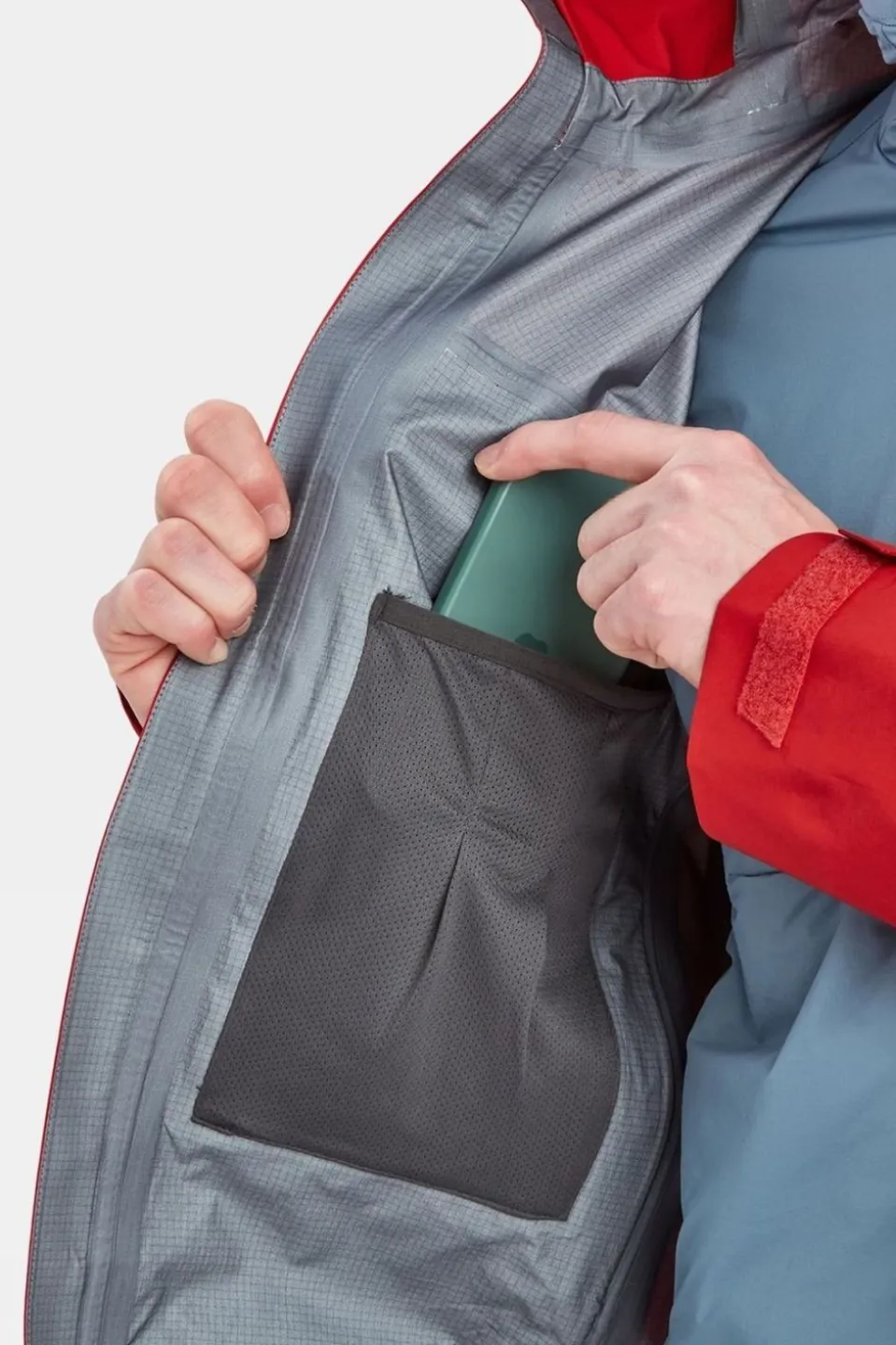 The Phase XPD is purpose-built for extreme mountaineering and ski touring expeditions, offering exceptional durability and protection. Its robust 80D fabric is strategically placed on the shoulders, hips, and elbows, delivering top-tier weatherproofing and resistance against abrasion, especially when carrying a rucksack or harness. The rest of the jacket employs lighter 40D fabric to reduce weight and enhance breathability while maintaining remarkable durability.