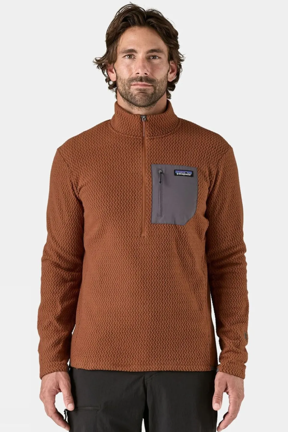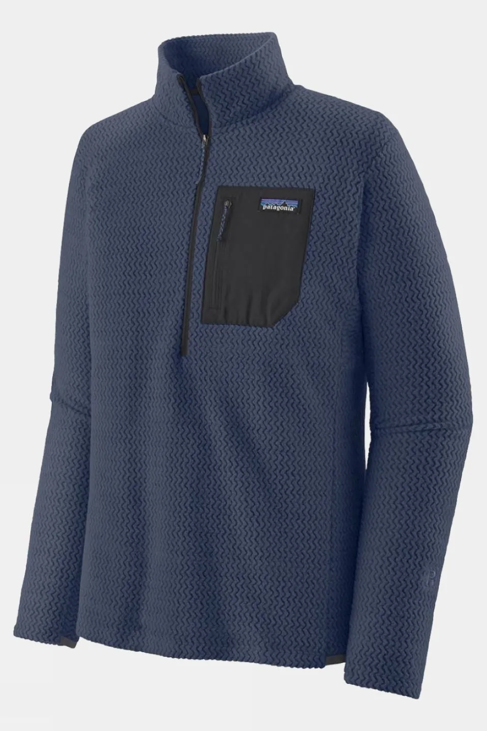 Extremely light and packable, Patagonia have built the technical R1 Air fleece with hollow core yarns and a lofted zig-zag texture to trap air, move moisture and breathe for exceptional warmth without weight during high-exertion, non-stop activities in cold conditions.