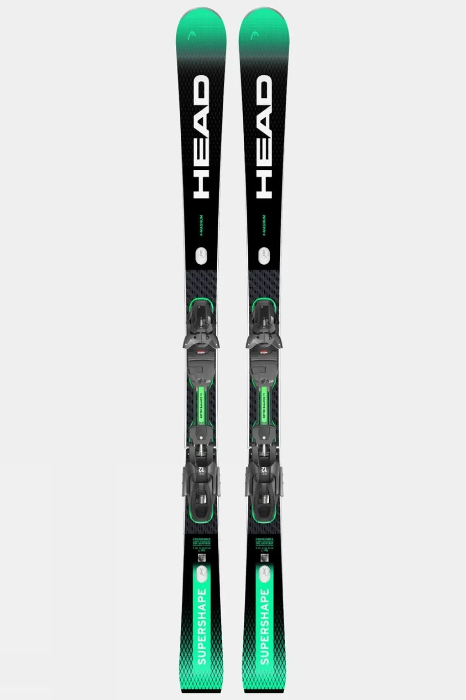 As the most versatile ski in the Supershape category, the e-Magnum excels in handling both short and long turns at any speed, delivering unmatched edge grip and rebound energy. Renowned as the most adaptable carving ski, the newly-designed Supershape e-Magnum performs flawlessly, whether you’re skiing fast or slow, making short or long turns. With a 72mm waist, narrow tail, and a tip shape crafted for effortless turn initiation, it offers full-length edge grip and rebound throughout the turn. The ski features a metal-reinforced World Cup Sandwich construction enhanced with lightweight yet strong Graphene and Crossforce Carbon, ensuring superior power transmission on the slopes. HEAD’s EMC technology minimises vibration for a smooth ride at all speeds, while the unique Better Balance system plate maintains a consistent ramp angle for all boot sizes, providing optimal balance for every skier.