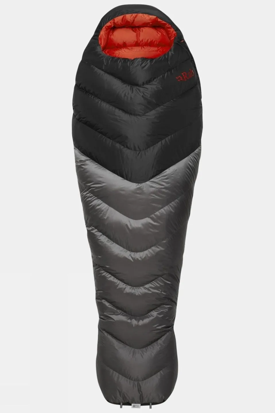 The Neutrino Pro 500 is filled with 500g of 800FP goose down, stabilised in chevron shaped baffles, and cleverly designed to reduce the amount of fabric needed compared to traditional horizontal baffles. The trapezoid boxwall baffle construction allows the down to fully loft, eliminates cold spots, and maximises warmth. Additional baffles along the length of the zip and around the neck decrease heat loss and with an adjustable drawcord around the hood you can cinch the bag around your face.