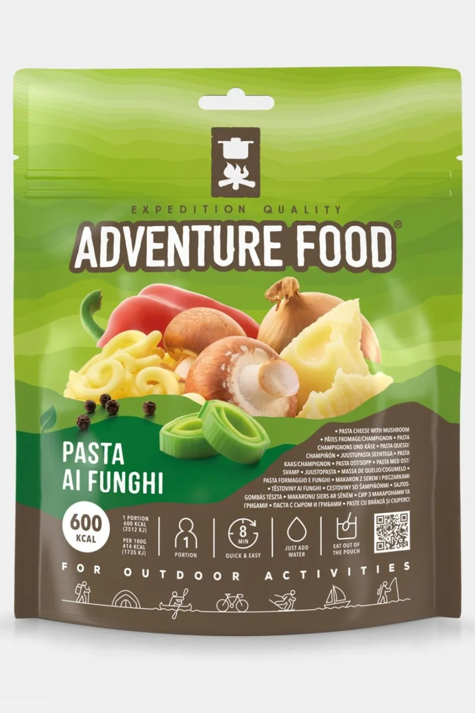 The VegetarianPasta ai Funghiis packed with with mushroom, leek, bell pepper and onion in a creamy Emmentale cheese sauce. It’s a veggie-filled, comforting meal that’s perfect for refueling during any adventure. It’s super simple to prepare. Just open the pouch, add hot water, stir, waiteight minutes, and you’re all set to enjoy a wholesome, delicious stew!