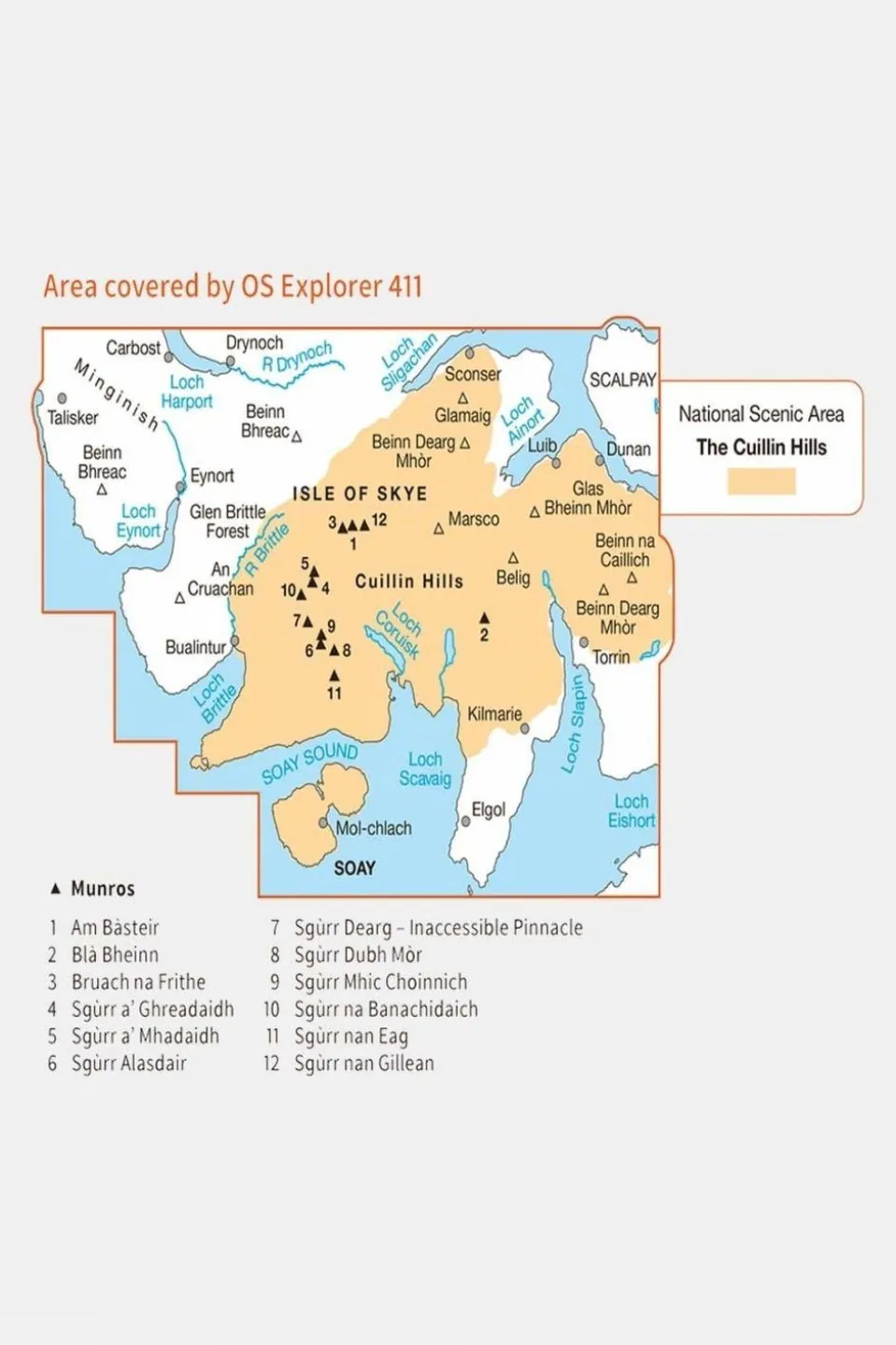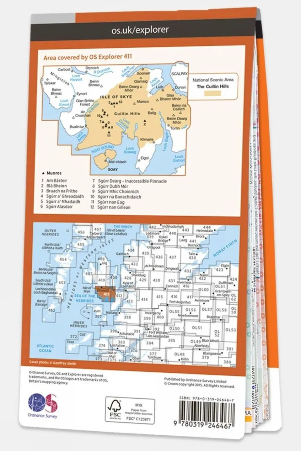 Ordnance Survey Explorer 1:25000 scale map covering Skye Cuillin Hills.With its 4cm to 1km (2? inches to 1 mile) scale, the OS Explorer Map series has been adopted by many individuals and organisations involved in outdoor activities ? from walkers to cyclists and from horse riders to climbers and water sports enthusiasts.Every part of England, Scotland and Wales is covered by 403 maps that include National Trails, Recreational Paths, picnic areas, viewpoints and selected places of interest. In addition, there?s Rights of Way information for England and Wales.