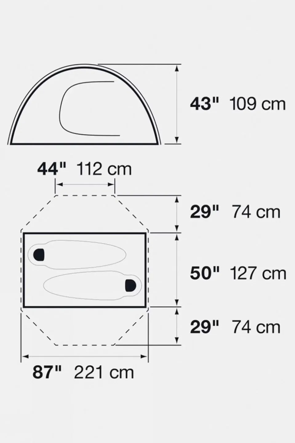 Floor: 68D polyester, 3000mm PU coating / non-PFC DWR finish