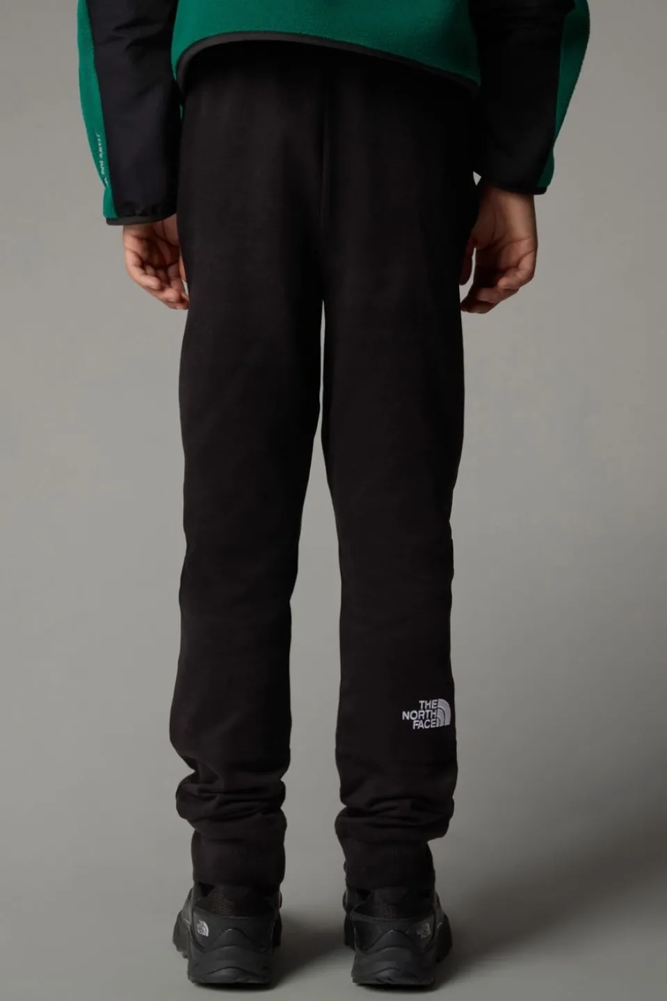 TNF embroidered logo on leg, front and back