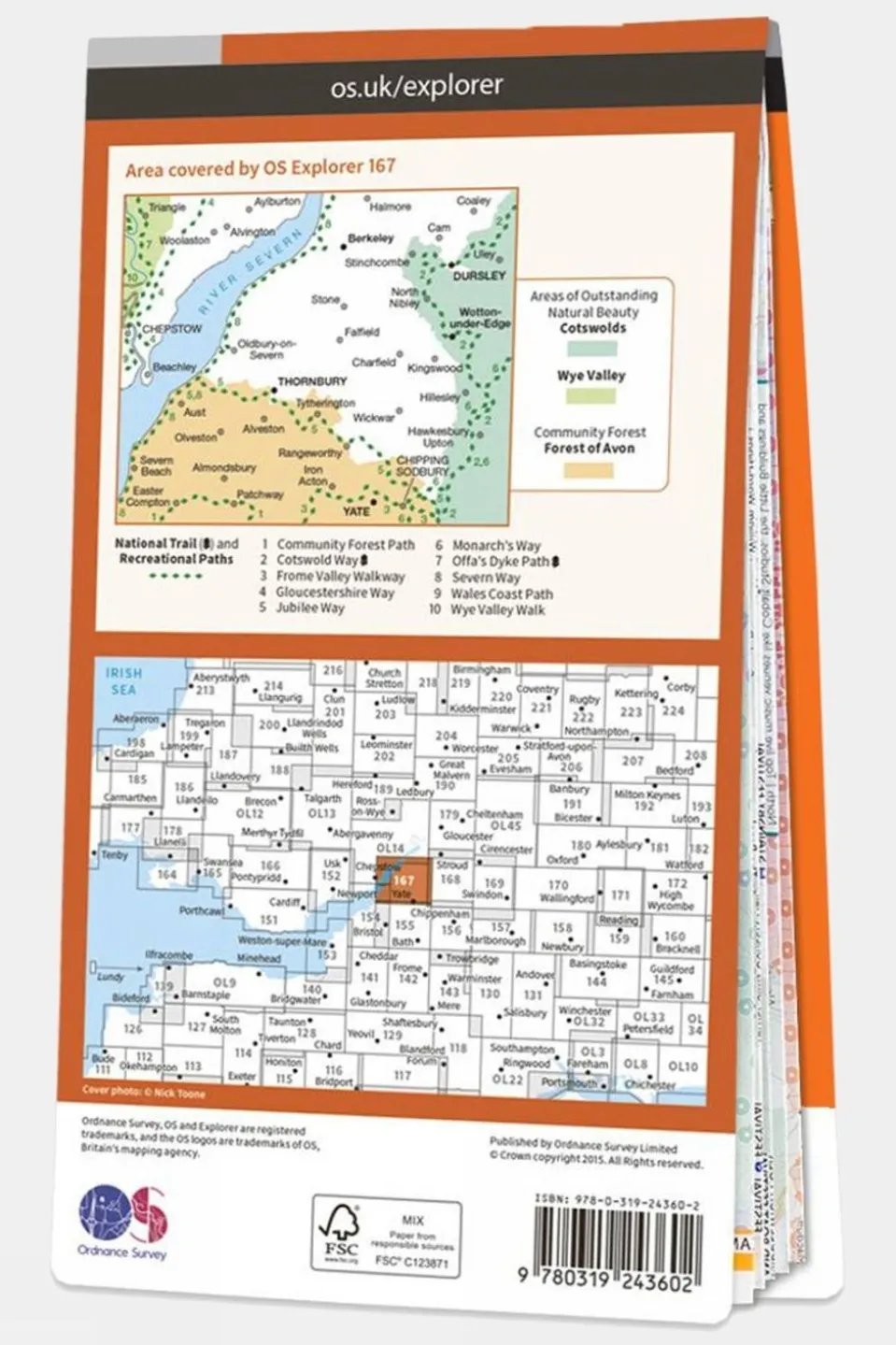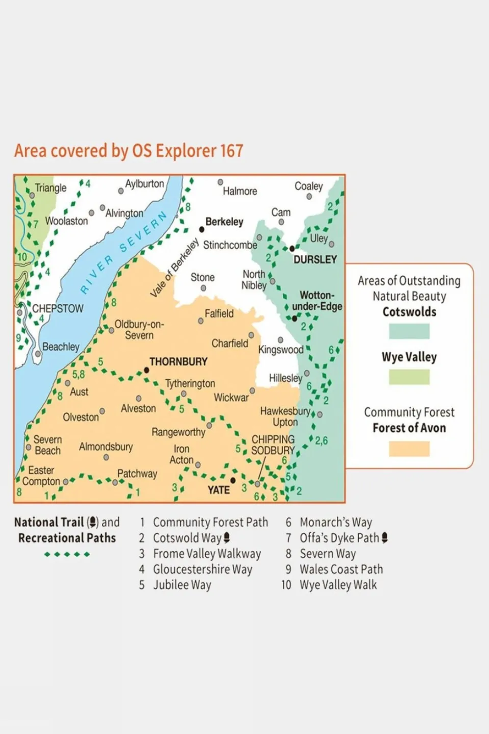 Ordnance Survey Explorer 1:25000 scale map covering Thornbury Dursley & Yate.With its 4cm to 1km (2? inches to 1 mile) scale, the OS Explorer Map series has been adopted by many individuals and organisations involved in outdoor activities ? from walkers to cyclists and from horse riders to climbers and water sports enthusiasts.Every part of England, Scotland and Wales is covered by 403 maps that include National Trails, Recreational Paths, picnic areas, viewpoints and selected places of interest. In addition, there?s Rights of Way information for England and Wales.