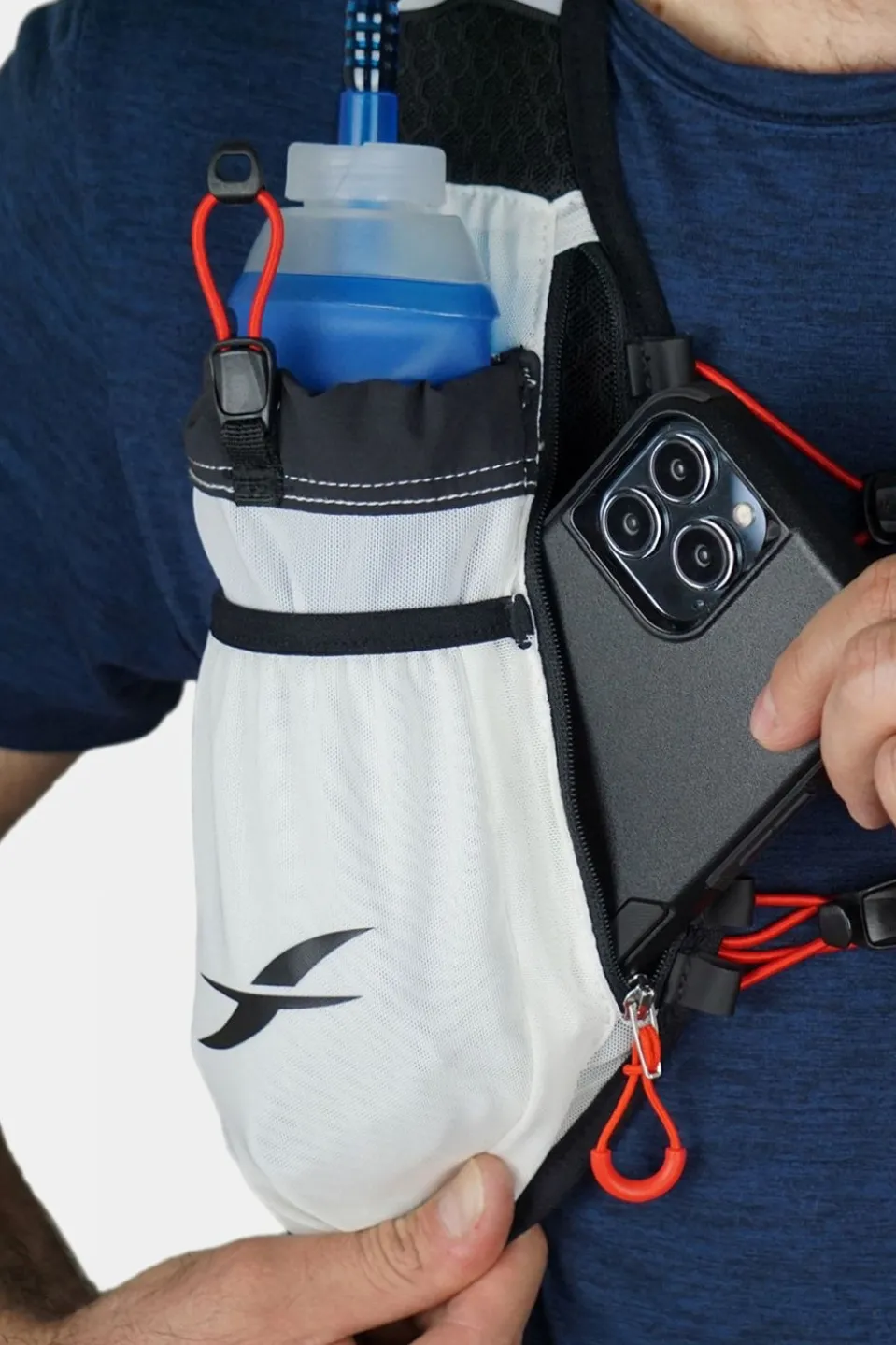 Designed with comfort and function in mind, the Trail 2.5 HydraVest is crafted for trail runners seeking performance. Lightweight and breathable, the HrydraVest is designed to move with you throughout your run. Equipped with two integrated soft flask bottles with long straws, each boasting a generous 500 ml capacity, staying hydrated has never been more convenient. With an additional bladder pouch capable of accommodating a 1.5 L bladder (sold separately), you have the flexibility to customize your hydration needs for longer journeys. Plus, a large storage pocket provides ample space for essentials, keeping your gear organized and easily accessible.