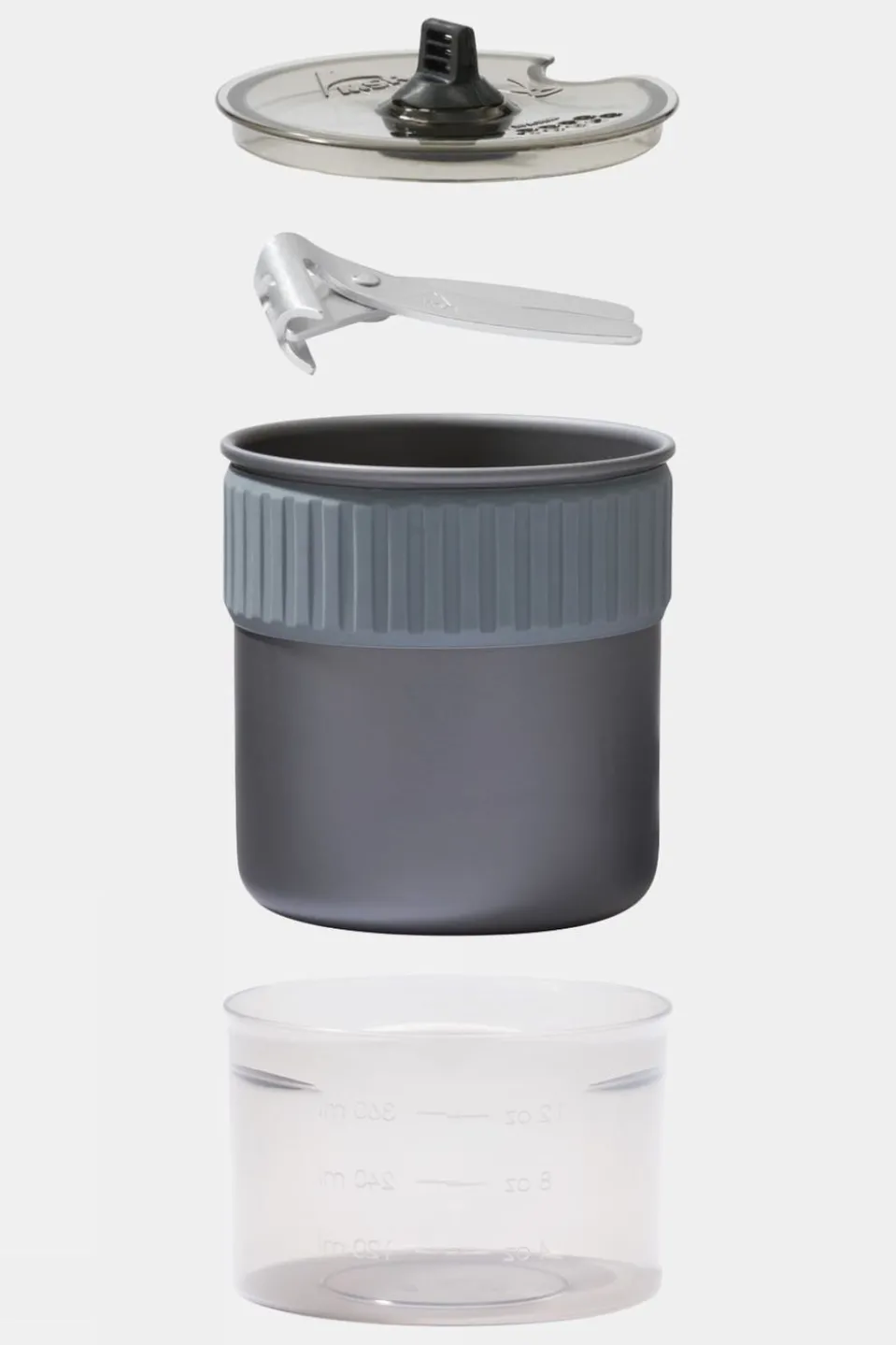 Kit includes: 0.75L hard-anodised aluminium pot with insulated grip, Snap-on lid with sipping/straining ports, Ultralight pot lifter, 475ml bowl, Stuff sack