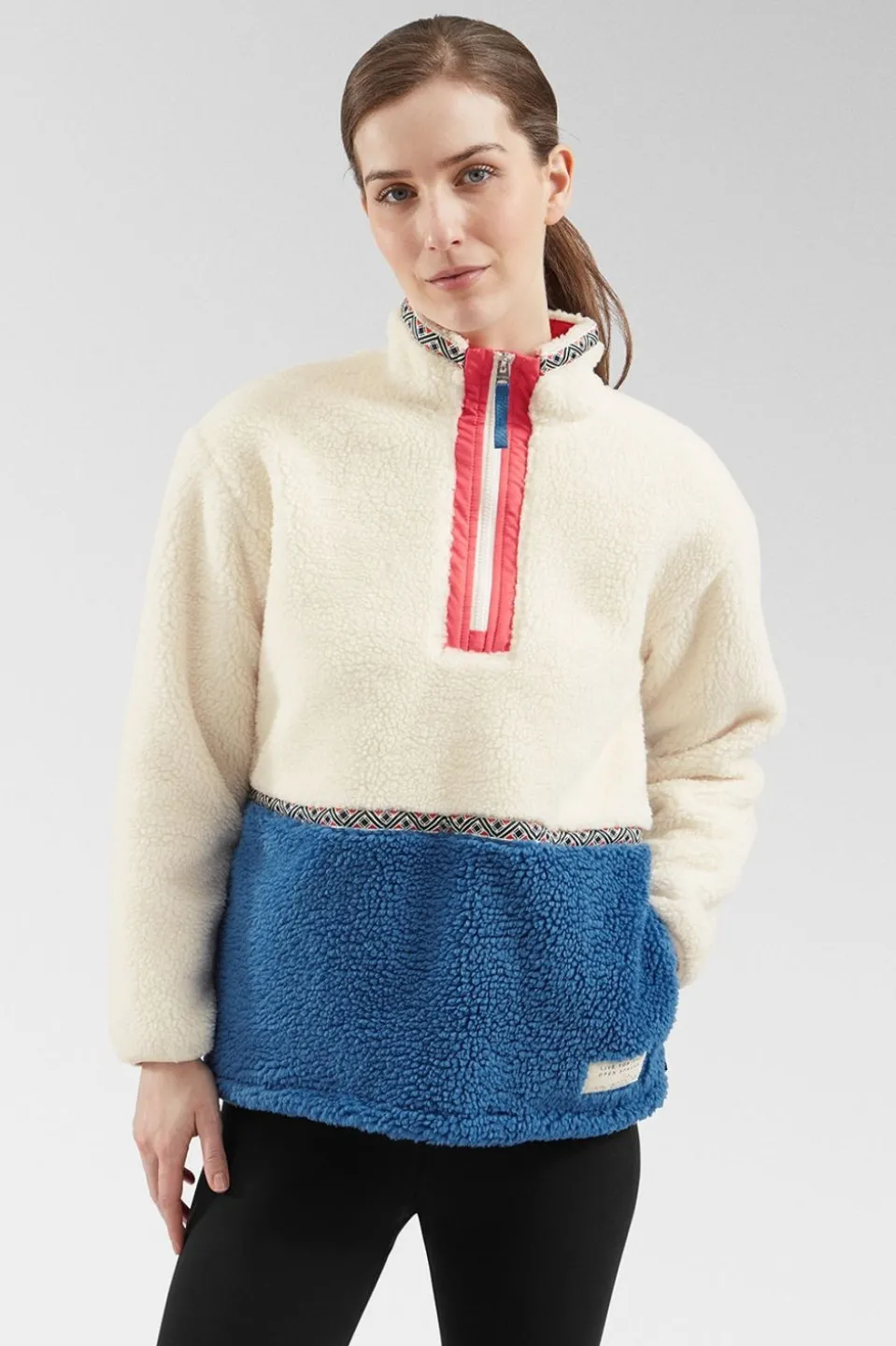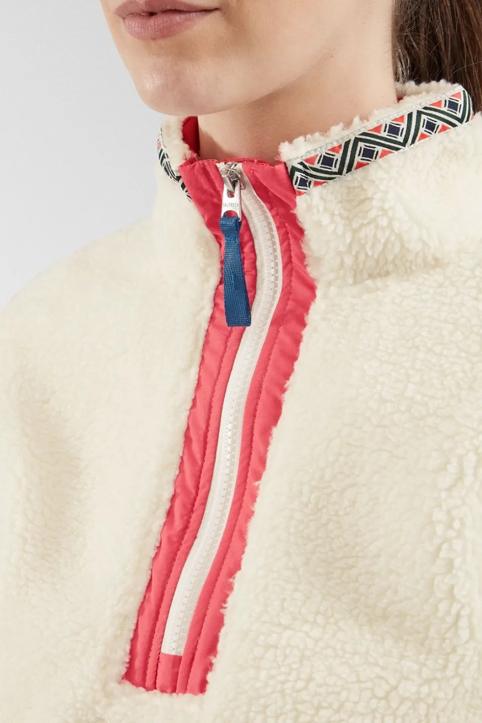 Effortlessly blend comfort with standout style in the Saltrock Women’s BattamsHalf ZipFleece, crafted from 100% recycled polyester for eco-conscious outdoor enthusiasts. With its bold colour block pattern and subtle tape detailing on the neck and chest, this fleece offers a striking look that’s perfect for everything from crisp morning hikes to relaxed evenings by the campfire.
