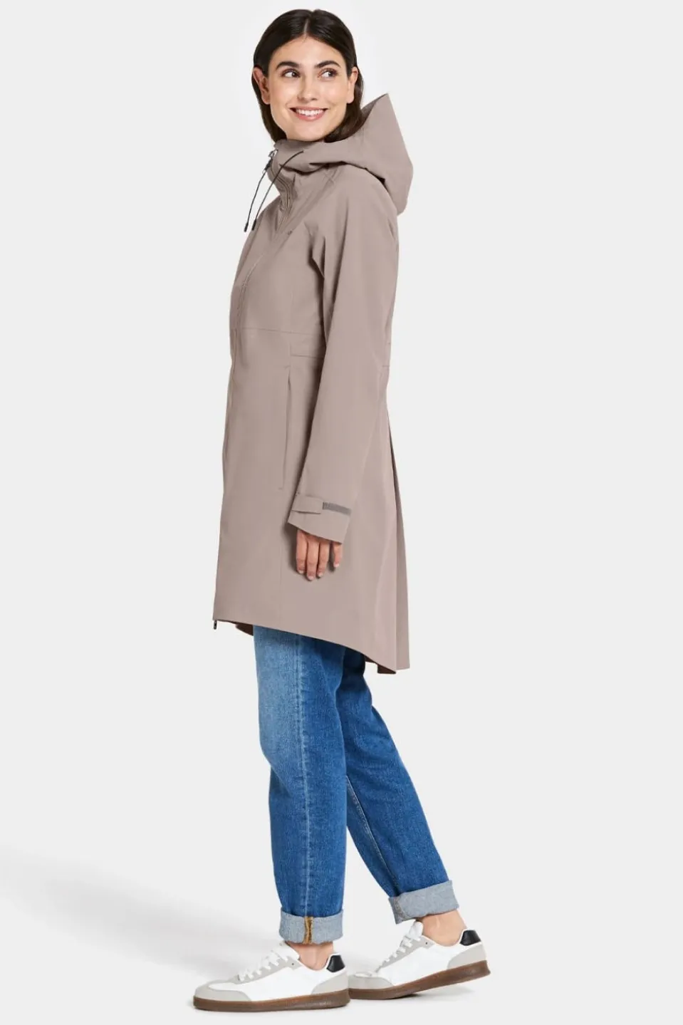 The Bea Parka features a fitted silhouette, complemented by a box-pleated back that enhances freedom of movement – absolutely perfect for active days outdoors. Its two-way adjustable hood with a shaped peak provides added defence against downpours, while the two-way front zip and ventilation button offer customisable comfort. An adjustable drawstring waist also lets you tailor the fit to your preference, blending function with the highly flattering design.