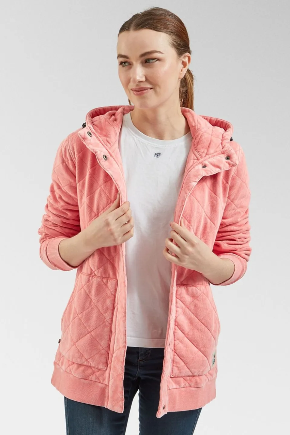 Womens Clementine Recycled Quilted Popper Up Hoodie