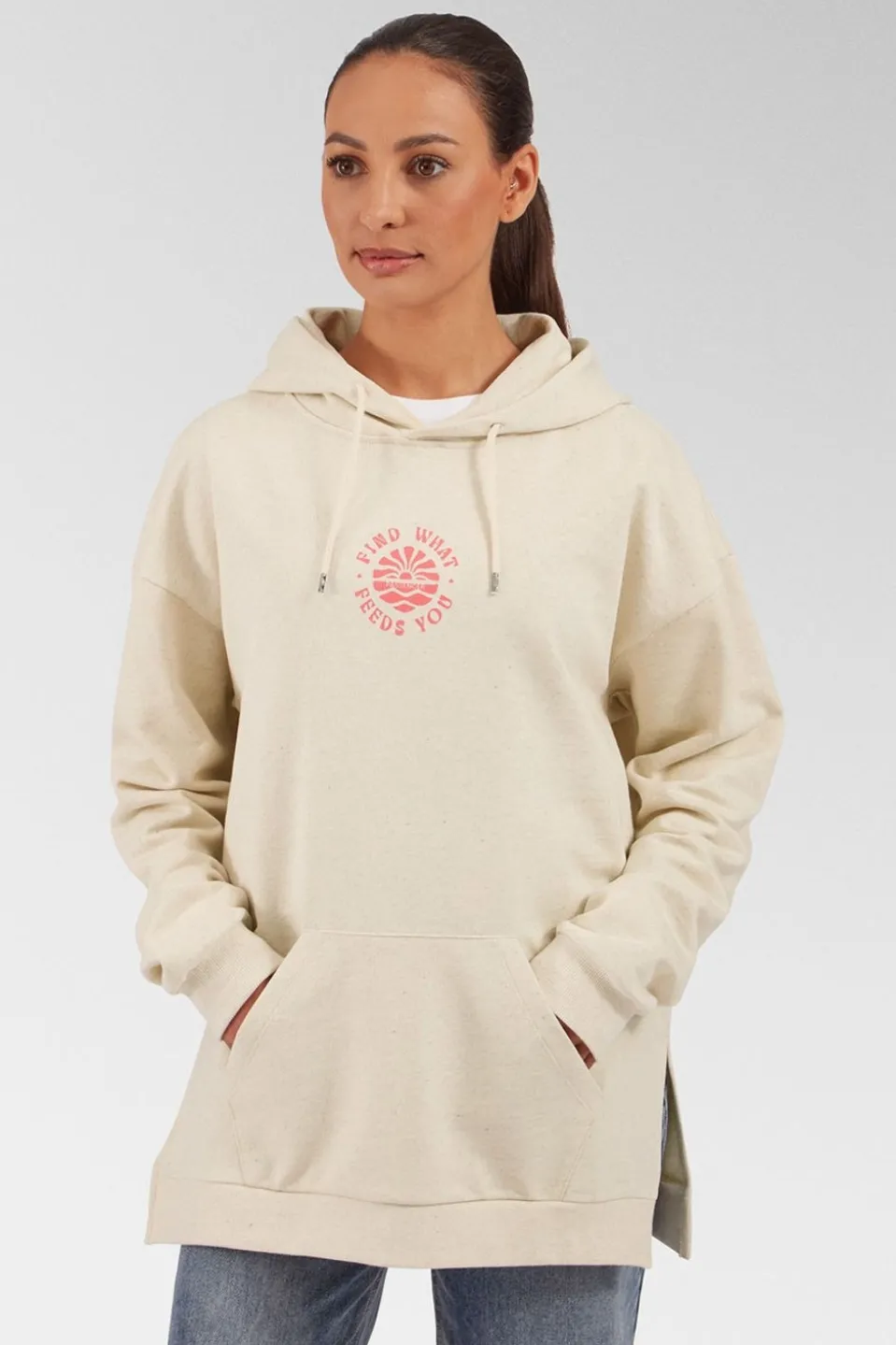 The Women’s Discovery Hoodie, your go-to layer for leisurely strolls and laid-back days. Made with care, this hoodie boasts a blend of recycled and organic mid-weight loop back sweat fabric, offering both comfort and sustainability. Its water-based front and back print add a touch of style, while the elasticated rib hem and cuffs ensure a snug fit. With a convenient front kangaroo pocket and a relaxed fit designed for comfort, the Discovery Hoodie is the perfect companion for any casual adventure. Made in Morocco with a commitment to eco-friendly practices, it’s a choice you can feel good about.