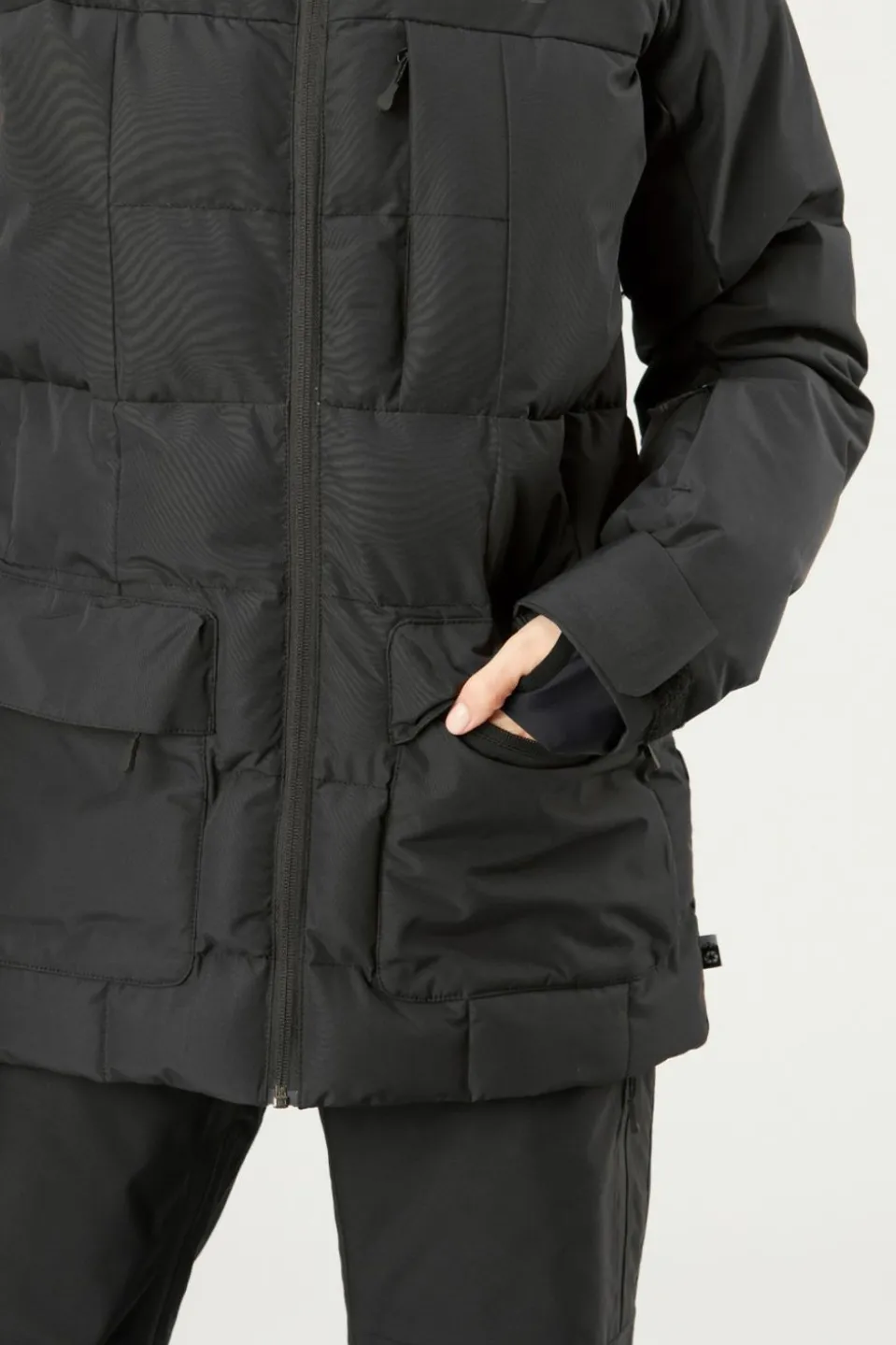 Purposefully designed for optimal warmth and coziness, the inclusion of pit zips grants you added ventilation during extended days on the slopes. Your comfort is priority, the hood, cuffs, and hem are all adjustable to ensure an ideal fit and enhanced protection from the elements. Thanks to its top-notch insulation, you can revel in all-day warmth, no matter how chilly it gets outside. With a long-back cut and a sleek square-quilted style, this jacket not only keeps you snug during the coldest ski days but also becomes a stylish companion for winter excursions in town afterward. Embrace the cold confidently with the Face It Jacket, your go-to choice for unbeatable comfort and functionality.
