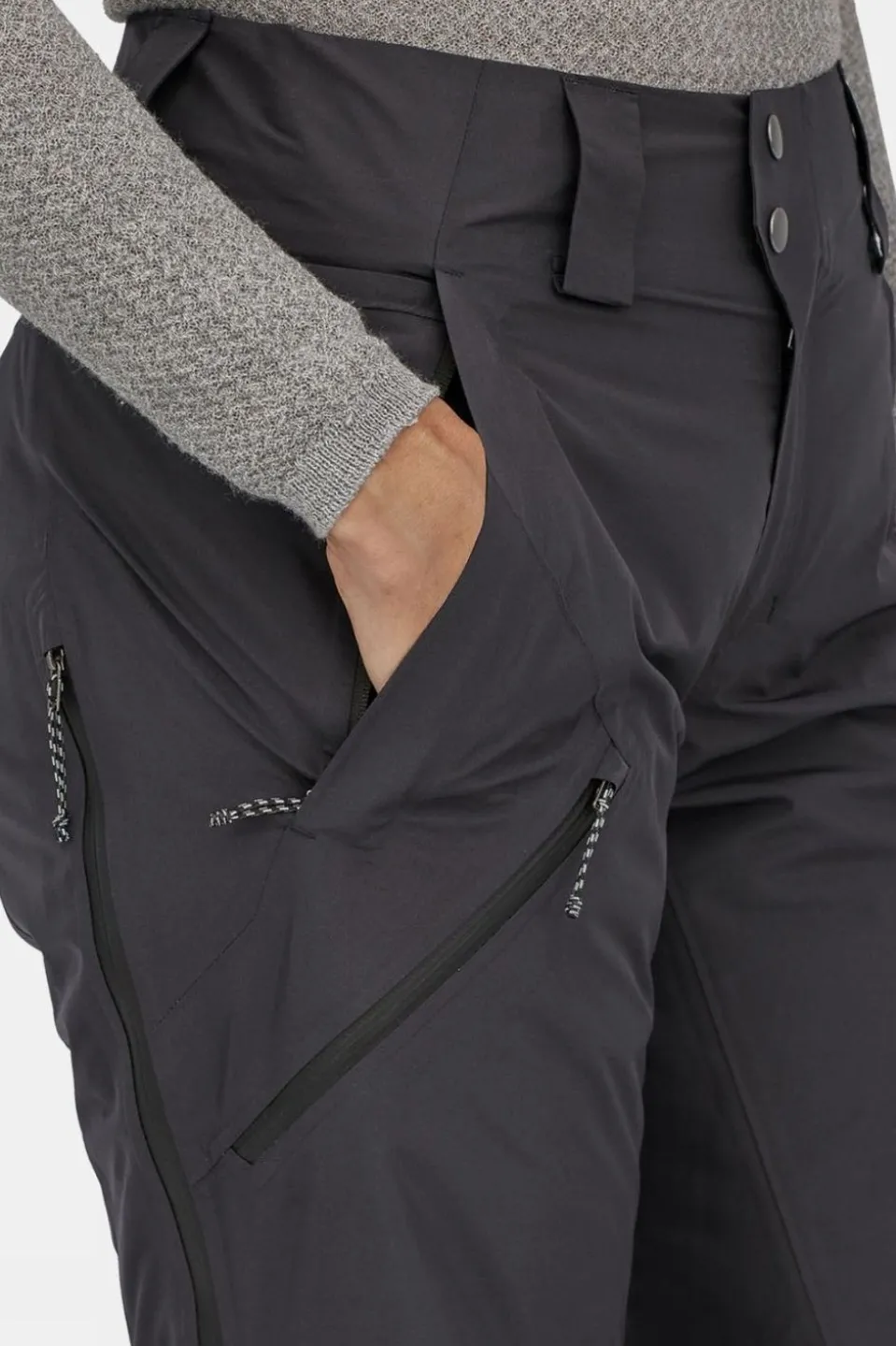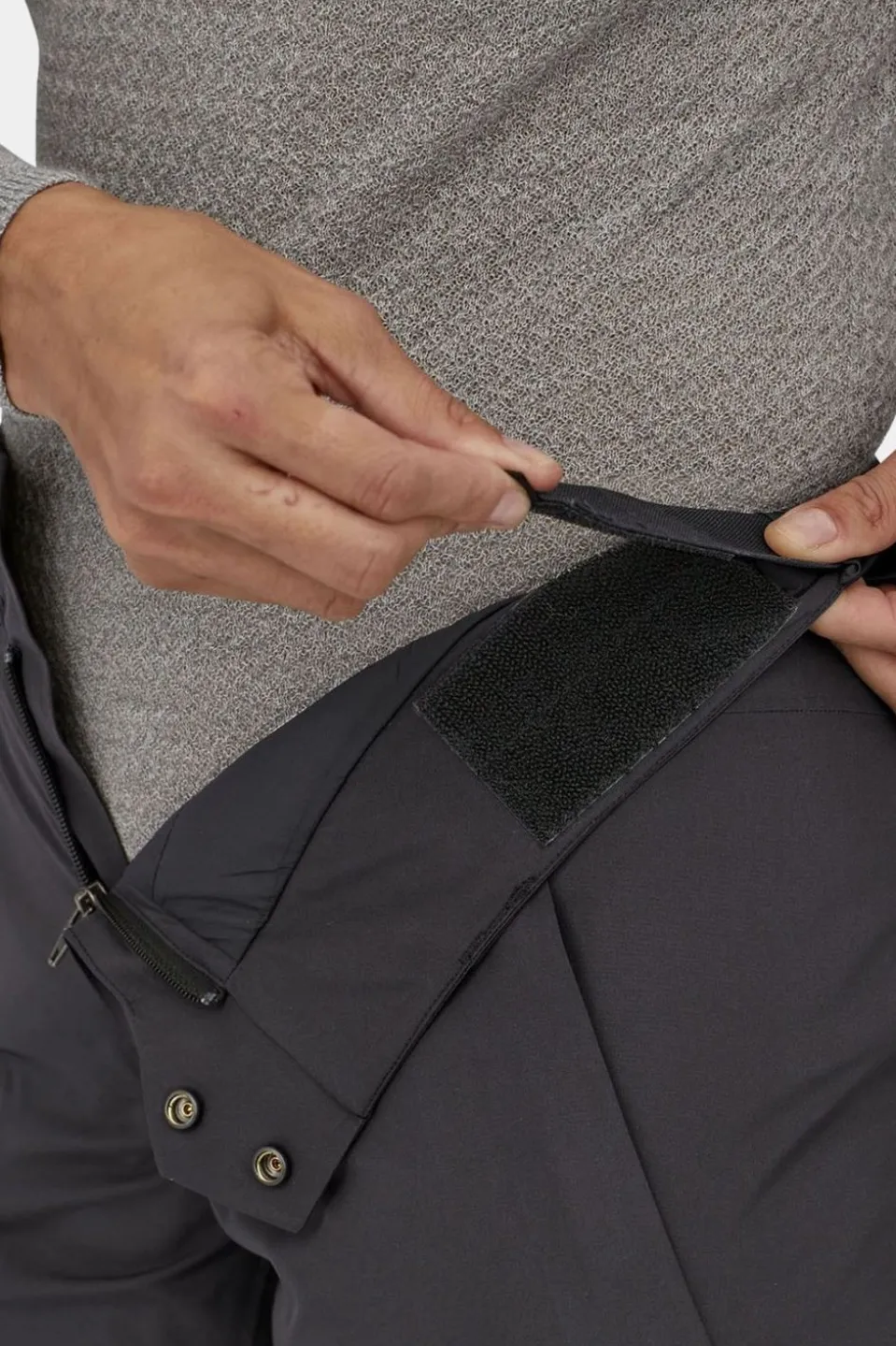 Webbing loop on rear attaches to powder skirt on any Patagonia Snow jacket
