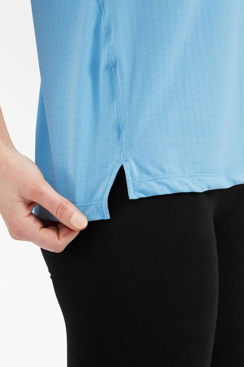 This technical T-shirt is perfect as a base layer, but can also be worn for comfortable sports activities indoors or outdoors. The blend of spandex, recycled nylon, and recycled polyester ensures the shirt fits snugly and moves comfortably with you. This also makes it lightweight, quick-drying, and breathable, and gives the fabric a nice, subtle texture.