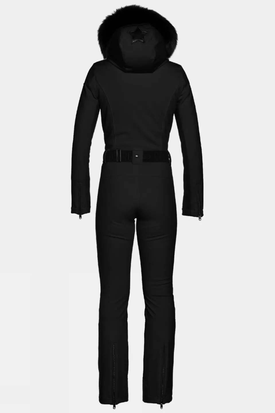 This jumpsuit boasts a range of practical features and stylish details. Its stretch lining incorporates an anti-odour finish, ensuring comfort and freshness throughout your outdoor adventures. Designed for warmth, it combines RDS certified down with Primaloft padding for excellent insulation. With four exterior pockets, two inner pockets, and a convenient sleeve pocket for your ski pass, you’ll have ample storage space. The elastic belt adds a flattering silhouette, while zippers at the sleeves and the back of the hem provide flexibility and style. For added functionality, there’s a snowcatcher at the bottom to keep you dry in snowy conditions. The jacket also features contrasting elements along the side seams of the outer shell, a faux leather star application on the fixed hood, and a faux fur border for a touch of luxury and fashion-forward flair.