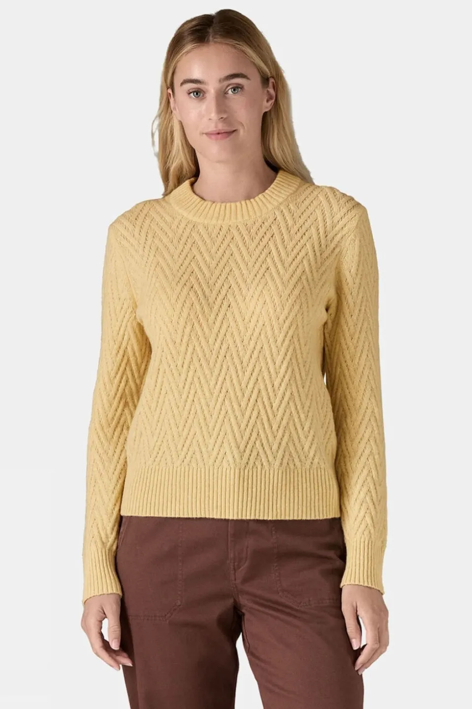 The Women’s Recycled Wool Crewneck Sweater is designed for versatility, perfect for cool weather wear or as a durable, warm layer for outdoor activities like camping. Made from a sustainable blend of 70% recycled wool and 26% recycled nylon, this sweater offers comfort and durability with a modern, tapered fit. It features a classic crewneck style, full-length sleeves, and rib-knit trim inspired by traditional fisherman sweaters. Available in jersey, cable, or jacquard stitch, the sweater provides a stylish yet functional option for everyday wear. Crafted in a Fair Trade Certified factory, it’s both eco-friendly and responsibly made.