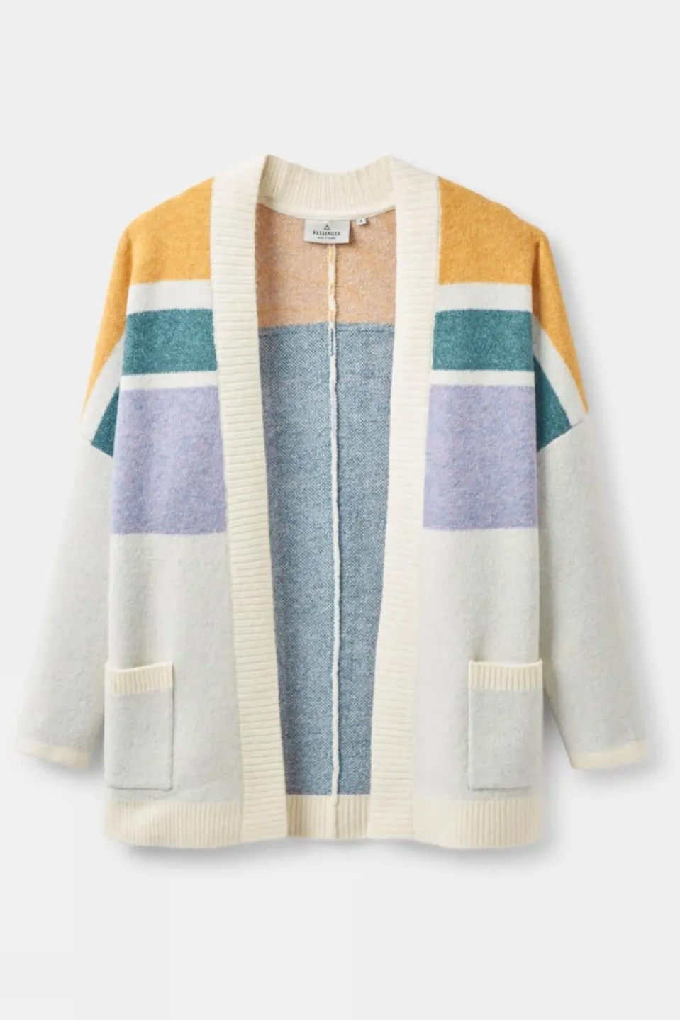 The Sunsets Recycled Knitted Cardigan from Passenger is crafted in a recycled yarn and offers an additional layering option with a relaxed fit. Effortless style with a jacquard knit pattern on front and back. Designed to wander, made to roam.