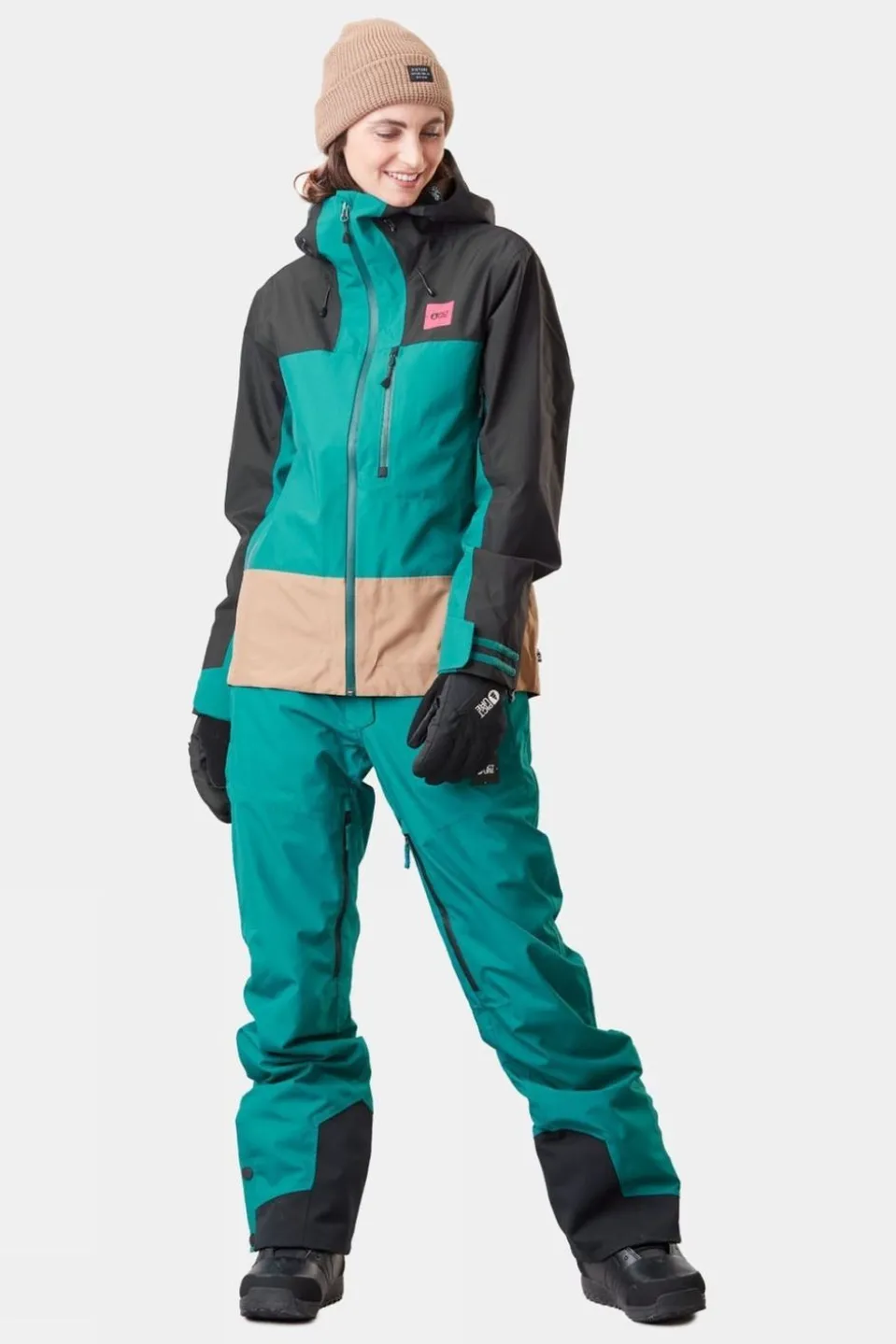The Picture Sylvia Jacket is not only warm and versatile but also environmentally conscious. Equipped with a Dryplay membrane and a PFC-Free Durable Water Repellent finish, it ensures all-terrain waterproof-breathability. The partly recycled polyester shell fabric makes it eco-engineered, contributing to sustainable fashion. With features like pit zips for ventilation, fully-taped seams, and reliable waterproof zippers, it effectively keeps moisture out. Additionally, the adjustable hood and cuffs, along with wrist gaiters, provide enhanced protection and a customisable fit for outdoor adventures.