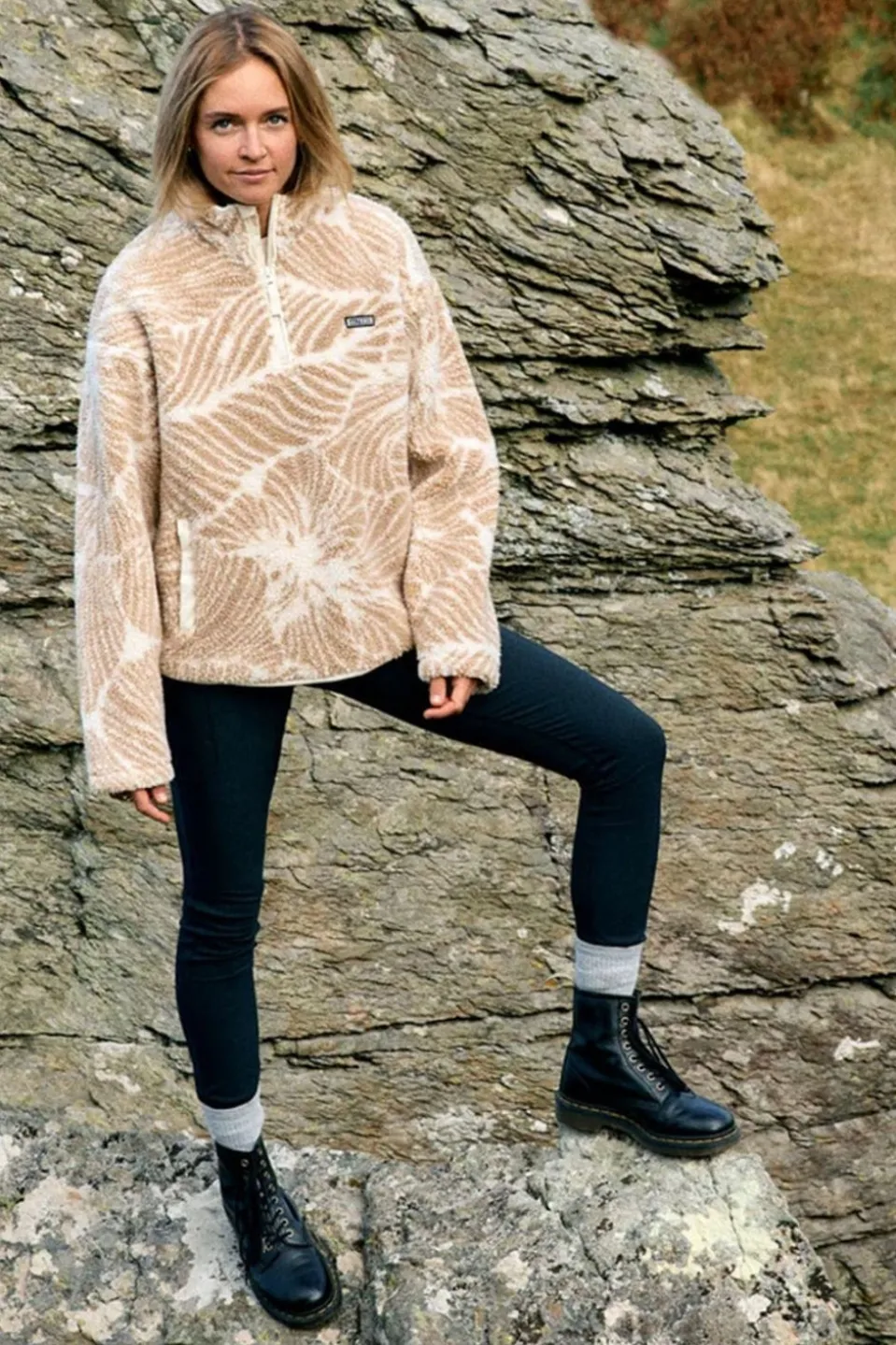 Designed for practicality, the Zella Fleece features a zip neck with a nylon chin guard, providing both warmth and protection from the elements. The curved hem and standard fit offer a flattering silhouette, while two side open pockets allow you to keep essentials close at hand. Whether you’re heading for a hike or enjoying a casual day out, this fleece delivers on both performance and style. The Saltrock rubber badge on the chest adds a subtle yet distinctive touch, reflecting the brand’s fun appeal. Ideal for layering or wearing on its own, the Saltrock Zella Floral Recycled Fleece is a versatile piece that will quickly become a staple in your wardrobe.