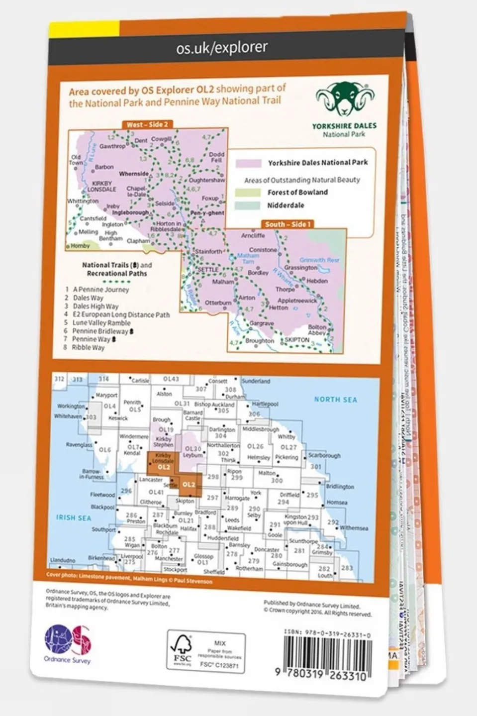 Ordnance Survey Explorer Active 1:25000 scale map. Covering The Yorkshire Dales (Southern & Western).These maps are often known as ?encapsulated? or weatherproof maps. They contain the same information as the standard OS Explorer series but are covered in a lightweight protective plastic coating.As well as handling wet weather conditions, the OS Explorer Map – Active series can easily be written on with washable ink ? making it simple to highlight your favourite routes and then wipe them off when you return home.